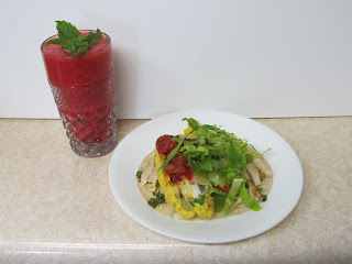 Use the April 9, 2017 taco recipe but make these changes. Add a tiny bit of fresh or dried oregano (I used to much in the photo), fresh or frozen strips of sweet bell pepper to the bottom layer with your favorite meat sprinkled with dry taco seasoning powder. Top the taco at serving time with salsa, shredded lettuce, and tomato if desired.